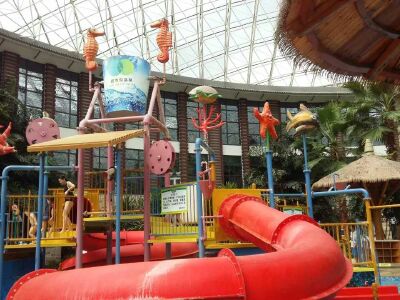 室内的适合小朋友玩,也有一个项目适合大人玩,还有人工造浪,麻雀虽小,五脏还是俱全的,游泳池水也不是很凉,凉了就去泡温泉,温泉水还是挺热的,泡了一会又去游泳,不错的还是,还有小鱼池免费的哦[偷笑]