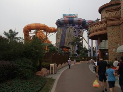 天气还算做美,周六去的时候,还在下雨,一进场就不下雨了,而且是阴天,玩了好久,最郁闷的是晒伤了,现在好痛好痛。小孩子玩的很开心,晚上在酒店还一个劲的要去玩水