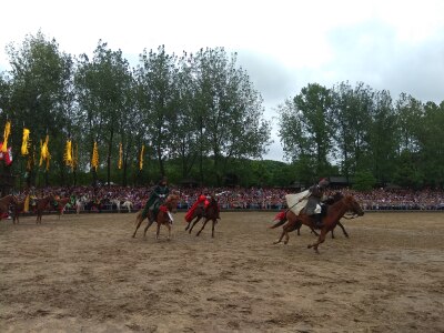 三国城非常好玩,里面有很多古代建筑,火烧赤壁,练马场,点将台,七星坛,人家一个小时逛完了,我们逛了四个半小时,水浒城倒是没有三国城好玩,很多地方都在翻新,里面没有三国城人多,唯一要说的是这个古船,等了二十多分钟,就开出去一点点绕了圈就回来了,一上船就去了二楼拍照片,因为有个露天的甲板,上去后惊呆了,船上好多好多蚊子,密密麻麻爬满了船顶,看的鸡皮疙瘩掉一地,坐也不是站也不是感觉身上也有,下次如果再去三国城再也不坐这个古船了!