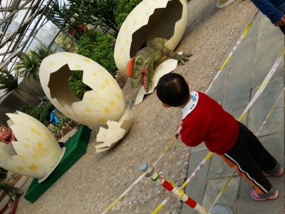 这个季节看到绚丽多彩的花朵和不同室内鹏的特色、心情不错、以及穿插其中的恐龙们给孩子带来了不少乐趣!