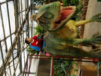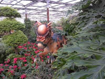 周日风太太,呼呼的,去哪里玩呢?思来想去,决定去花卉大观园。途牛下单,随即收到电子票,即可出发了。 已经不是一次来花卉大观园了,轻车熟路,抵达顺利换票,这次多了很多大恐龙哦,在层林中,在花卉间,不时看到摇头摆尾、喷水的恐龙,在仙人掌那里,还有一些塑料大蜥蜴。 恐龙是孩子们的最爱,尤其男孩子。超级大南瓜、蝴蝶兰、老榕树是我的最爱,仙人掌那个沙漠区是孩子最喜欢的……大人和孩子都玩得身心愉悦。