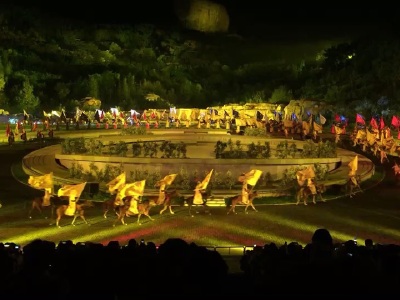 这次带我和媳妇的父母一起去承德旅游,顺便看的演出。我丈母娘和我爸都已经去过避暑山庄了,我总怕他们这次觉得没什么新东西可值得看的对这次旅游不满意,不过昨天看完演出,我心放肚子里了。四个老人看了演出,赞不绝口。一开始他们觉得没必要住在承德,现在也不说了,看完演出都在高兴地评价着。我是到现场买的票,一开始准备把他们送到门口,我就 不进去了,后来一看外面的广告,就下狠心现场又买了张票进去看了。现场票比网上买要贵20多元。后悔不如网上订了。节目刚开始就很震撼,很多匹真人骑马从四面八方涌上来,音响效果配合着,跟真跟狩猎似得。再后来,每个章节都有左右两个缓缓移动的大屏幕配合整体,感觉就像在看小型的北京奥运会开幕式的感觉。在第四章还是第五章,就是打格尔单那会,还有两个人骑着马真刀**的打,还一个人装作被箭射到从马上掉下来好真实。而且节目灯光布景效果特别好,后边的假瀑布让我们讨论了半天也分辨不清。第四幕,问天的时候,整个山上制造出繁星点点的效果,太漂亮了。总体来说,来了会很满意的走。而且为承德旅游夜间增加了可以观赏的内容,这下又能留住更多的客人吃和住。虽然演出票一人200多元,但我觉得真的很值这个价格。