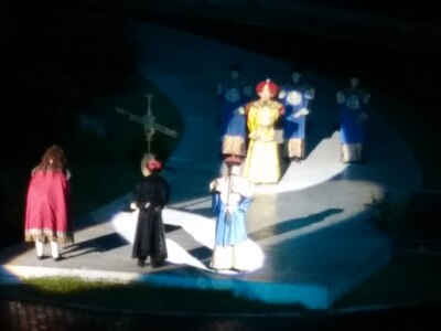 比较盛大的演出,晚上表演,其实还不错,能打79分,但是下雨了只能露天