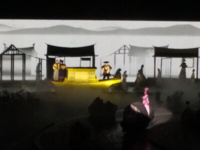 第一次带爸妈看这种实景演出,奔腾的战马,高科技的声光电舞台效果,让老人感到很震撼,连连夸赞好看。 整部戏在变换场景时,有几位御厨的表演,也很有意思。个人感觉不足的是所有的表演都是在地面上,缺了空中的表演内容,特别是梦蝶一场景有很多只蝴蝶在地上做飞舞,如果能有几只在空中飞就更好了哈。