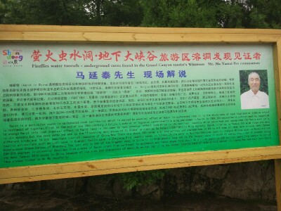 大峡谷的景色还是不错的。取票需要人工排队,没有自助,不方便。停车场比较大,从门票处排队取票后,可以乘坐小飞龙到景区门口,也可以往前走经过一个寺庙然后乘坐观光车过去,10元每位。其实走到洞口也不算太远。洞口发现溶洞到老大爷在门口义务讲解,活跃气氛,但游客好像太内向,不怎么配合。溶洞里面基本分三部分,一部分游览溶洞景观,一部分60元漂流(不漂流的可以走陆路),一部分游乐活动30元。里面还是比较凉爽舒服的。景区停车场有家餐厅卧龙山庄,价格不贵,主要是以炖鸡,炒菜为主。