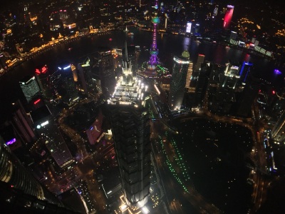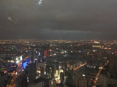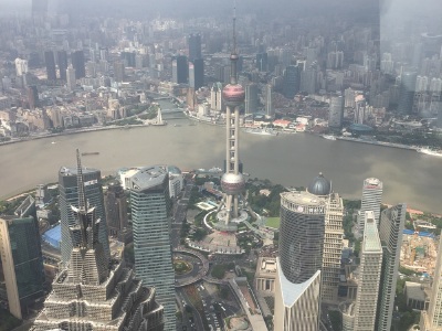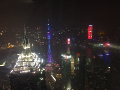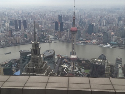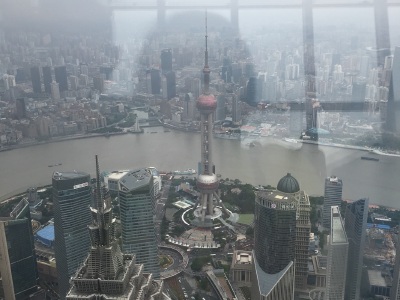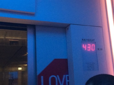100层400多米俯瞰全上海,电梯上升的时候耳朵会不舒服,就像飞机刚起飞的那种感觉。其他挺好的。