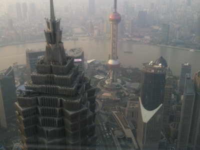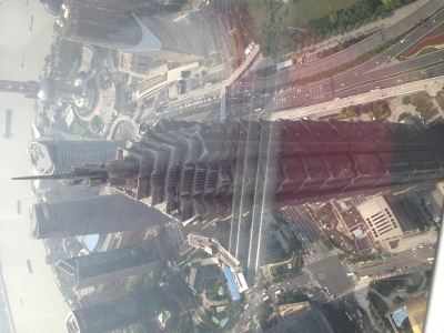 环球金融中心100层观光厅真好,很壮观,金茂的尖顶就在脚下,小孩还想再去呢。