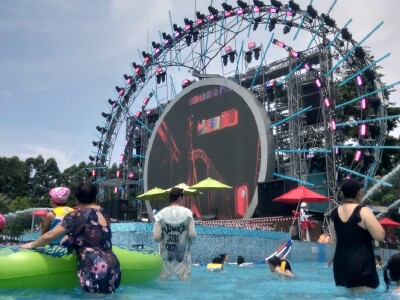 水上乐园和欢乐世界是孩子最喜欢玩的地方,欢乐世界有水上项目,雨衣是15元一件,很多刺激的项目都要140厘米以上才可以玩,而且要排队,因为太热所以买了快捷通道的手腕带,12个项目都不用排队,很方便!水上世界除了看身高,还要称体重,最近电音节还比较热闹!