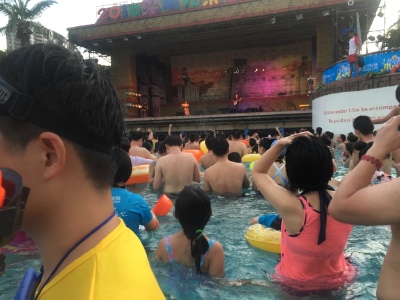 夜场水上公园人很多,项目排队要排1小时左右。游泳的地方水都是热的,不知道本来是热的还是怎么