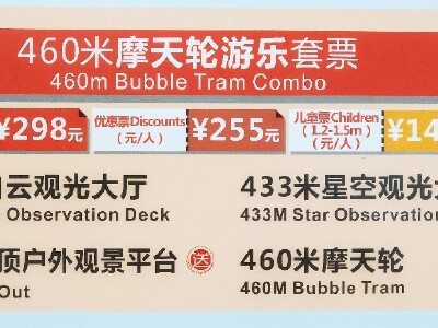 门票名称:<广州塔460米摩天轮游乐套票成人票(16:00-18:00)专项>