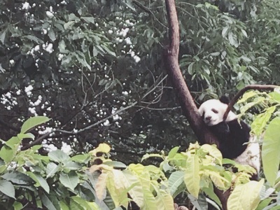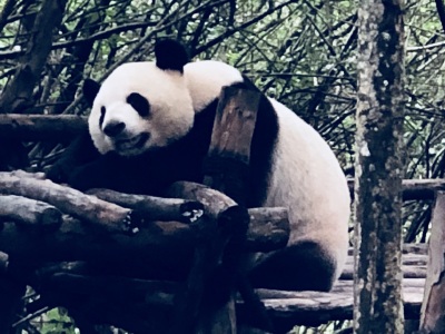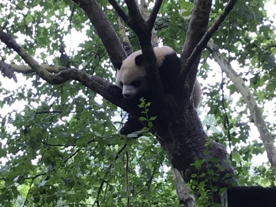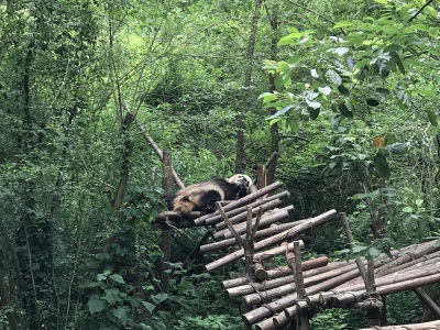 坐车很方便,环境很好,特别舒服不晒。上午去的比较晚,但是很幸运还看到了熊猫玩耍,特别是挂在树上睡觉的熊猫,女儿看到了很兴奋。