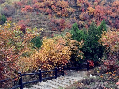 深秋的八达岭森林公园的景色太迷人了,山峦叠嶂,山坡密密丛丛层林尽染,在阳光的照耀下,延绵的长城显得更加雄伟壮观。