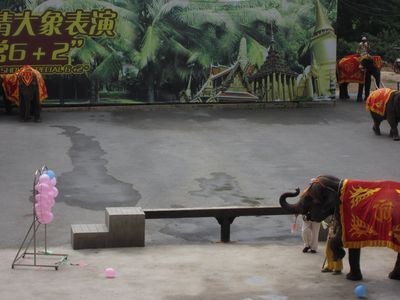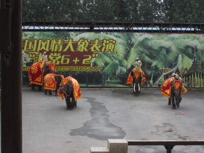 动物园很大,动物都很可爱,还有大象表演