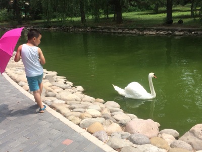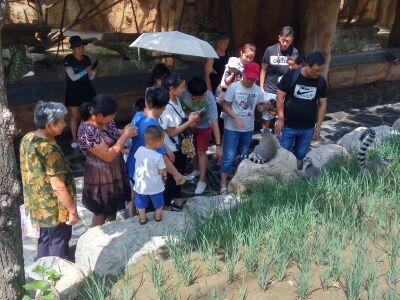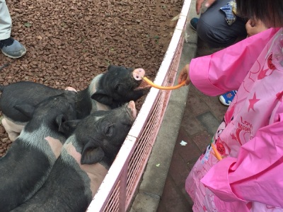 动物园挺大的,周末因为热的原因人不太多,坐着小火车和笼子车参观了小动物们,还不错!