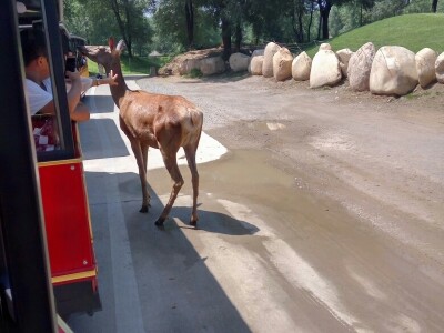 自己开车去的,自驾区的动物步行区都有,没有什么亮点,而且猛兽区排半天队也没有什么意思,动物种类好像也不是很多,去的时候动物表演的时间也没到,需要等很长时间,就没有看,园区内消费极高,五个人吃个面都两三百。