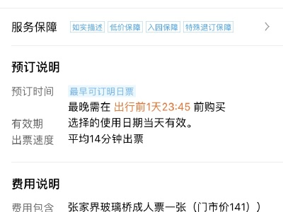 门票名称:<【C线】张家界大峡谷玻璃桥成人票(赠送餐券代金券)(入园时间09:00-11:29)专项>