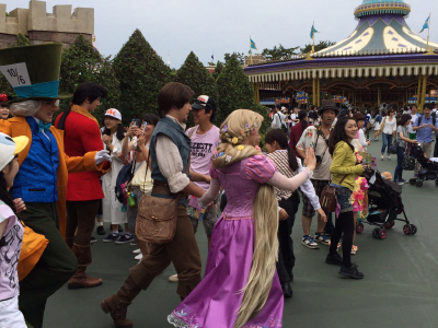 景区服务:东京迪斯尼的景区服务非常好,公园面积很大,不论是景点还是休息区都非常干净。我们8月21日去的迪斯尼,一早就下了大雨,下午又下了一场雨,雨停后,就看见工作人员用雨刮器把休息座椅上的雨水刮掉,用干净的白毛巾将座椅又擦了一遍,每个休息的长椅都是如此,让人看了非常的舒服,觉得日本迪斯尼的工作人员的服务非常到位。每一位工作人员都面带微笑,让大家的心情都非常的开心和愉快。一点不会因为下雨而影响心情。