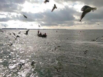 食购娱: 出发前,可以自己在住的附近买些包子面包饼干之内的,滇池边很多海鸥,可以拿来喂,它们会飞到你手上叼走,非常漂亮,滇池边很多卖海鸥饲料的,10元一包,一包就三个干面包,一会儿就没了,自己在外面买比较划算,可以多买一些,海鸥群真心很漂亮!~
