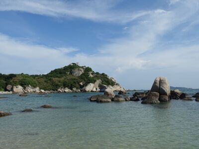 私人海岛就是干净很多..有很大的草坪可以野炊...海水碧蓝碧蓝的...还可以潜水...人也比较少..沙滩特别细也很干净...踩上去软软的..比起西冲十里银滩之类的公共海滩强了几百倍...推荐推荐!在码头坐快艇去的..就是快艇凳子太硬了屁股都给颠簸麻了...