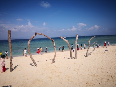 早早在网上定了好门票+观光车,上岛的人很多,都是旅行团,码头到岛上要坐20分钟的船,海上风很大,船晃动也厉害,很容易晕船,下了船真的是人山人海,观光车一定要坐,很多沿海美景是走路不能进入的,人只能在山上走走,途中会有几个站点,没什么意思,旅游开发的噱头较多,电影场景的拍摄地都可以做个场景进行收费挺黑的,水上娱乐项目其实就在码头旁边,不是很大,项目在其他海岛也都可以玩到,我们尝试了一个风洞的项目,还挺刺激,也算是又完成了一项没玩过的项目,沙滩的沙子是整个三亚海域最最舒服的,孩子很兴奋的玩了很久沙子,我和老婆没什么兴趣,连泳衣都没换,下午回去又是一路晕船实在不好受。