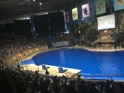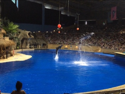 相对比较方便,北门人少,带娃看的海豚表演很精彩