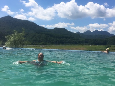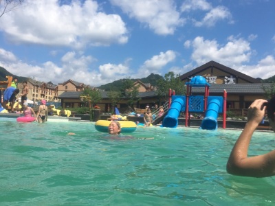 花溪沐值得一去,游泳池四面环山,我们去时赶上雨后天晴,云雾缭绕在半山腰,景致太美了!与商店问题,途牛的售后非常好,跟踪服务,终于解决了问题,下次订票还在途牛订