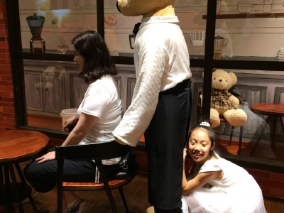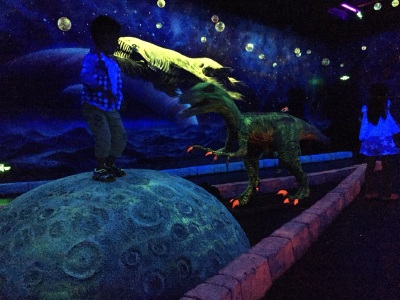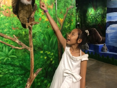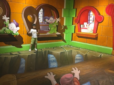 地方不是太大,适合5岁以上孩子玩,孩子很喜欢。花舞森林里的恐龙有点可怕,黑乎乎的环境,突然的叫声,很吓人。泰迪熊不少,还有各种动物的玩偶,适合拍照。