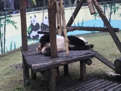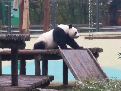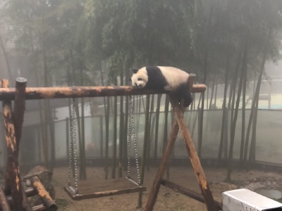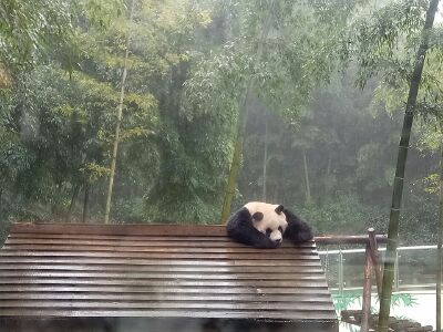 去的那天刚好下雨,人还是挺多的,虽然四周都是雾气蒙蒙,能见度很低,但是宛若仙境 有两只熊猫,下雨天还趴在那里睡觉。 好多竹子展览博物馆